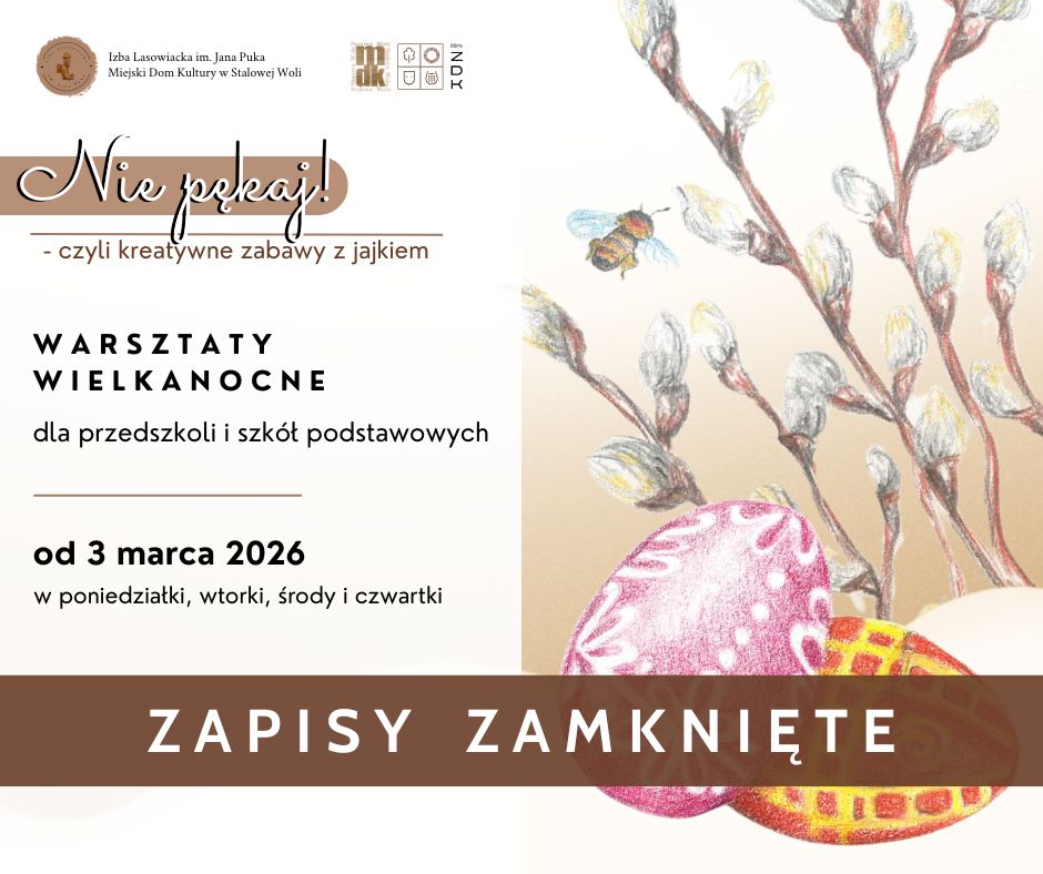 Informujemy, że zapisy na warsztaty wielkanocne pt. „Nie pękaj! – czyli kreatywne zabawy z jajkiem” dobiegły już końca. Dziękujemy za…